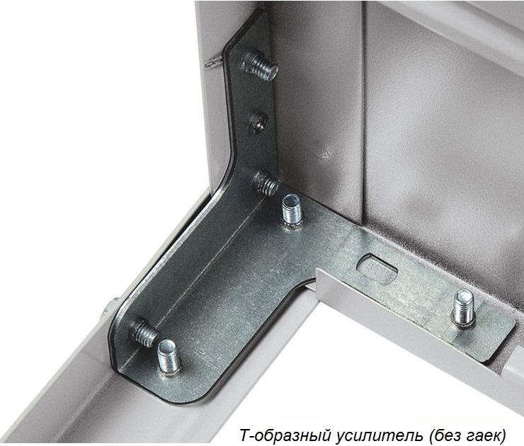 — нагрузка на полку с использованием Т-образных усилителей (без гаек) – 150 кг. - Грузоподъёмность стеллажа в стандартной комплектации (Г-образные усилители только на верхней и нижней полках) – 500 кг. При установке Г-образных усилителей на всех полках нагрузка на стеллаж увеличивается до 600 кг. При установке Т-образных усилителей на всех полках – до 750 кг.