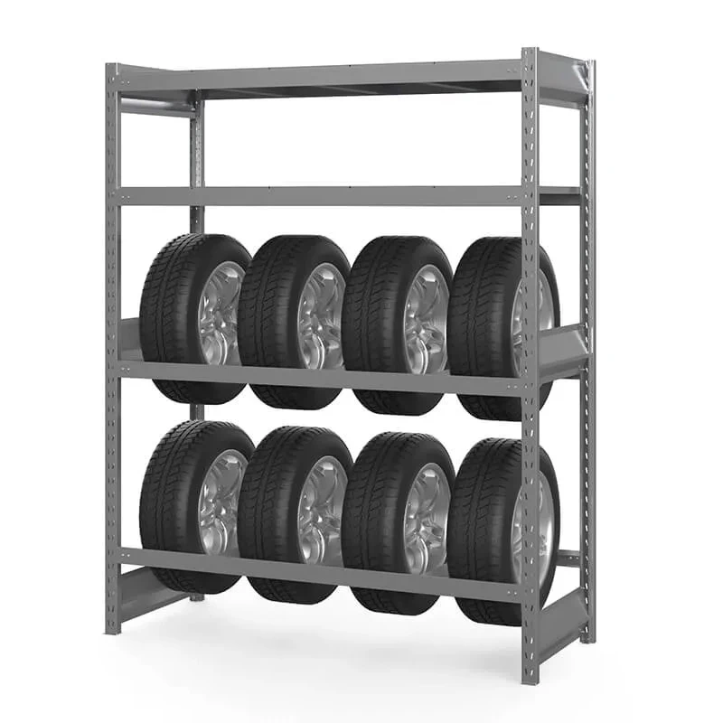 - Если же вам требуется хранить не шины, а колёса в собранном виде, то их следует класть горизонтально, а для этого подойдёт стеллаж СГ другого вида: с металлическими полками или настилом из ДСП.